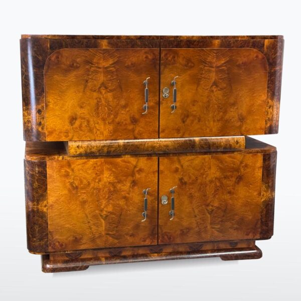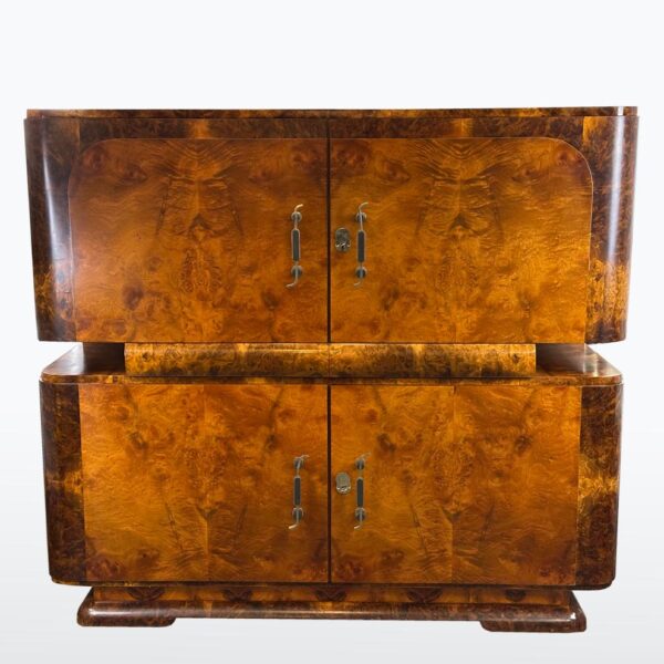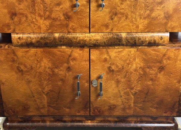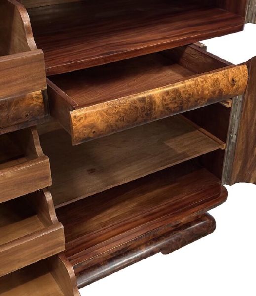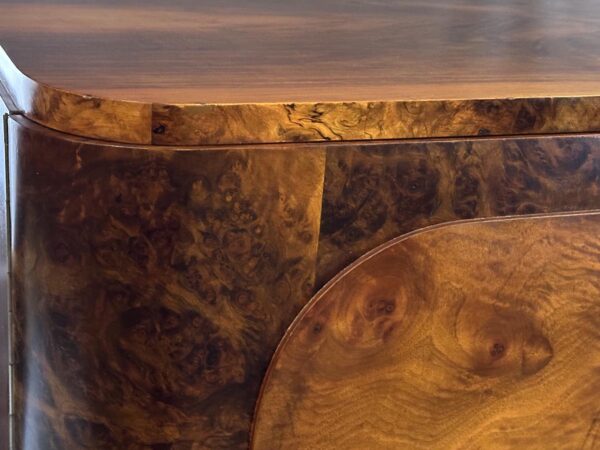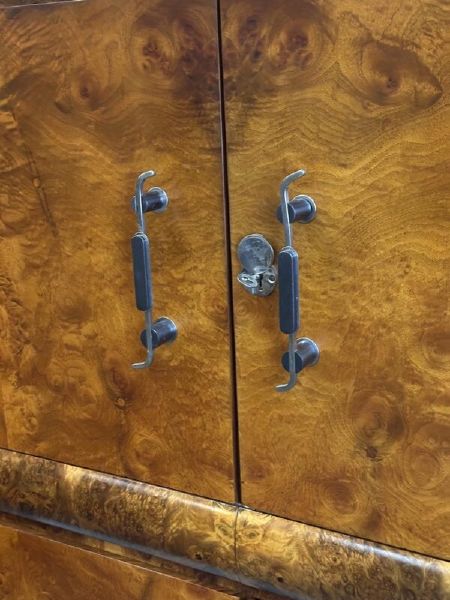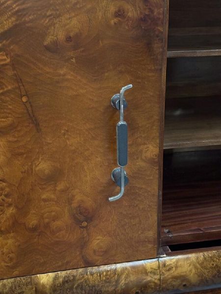 Materialien: Massivholz, Nusswurzelfurnier, Metall