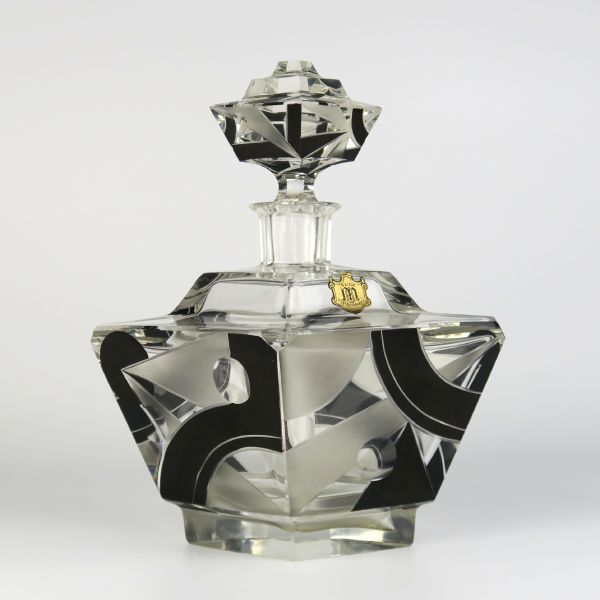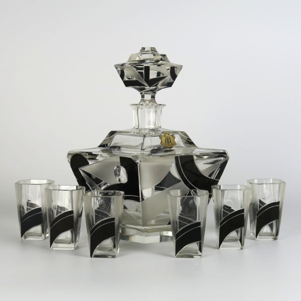 Antiquität: Karaffe mit Gläsern - klares Glas - Mechold Brüder - 1930