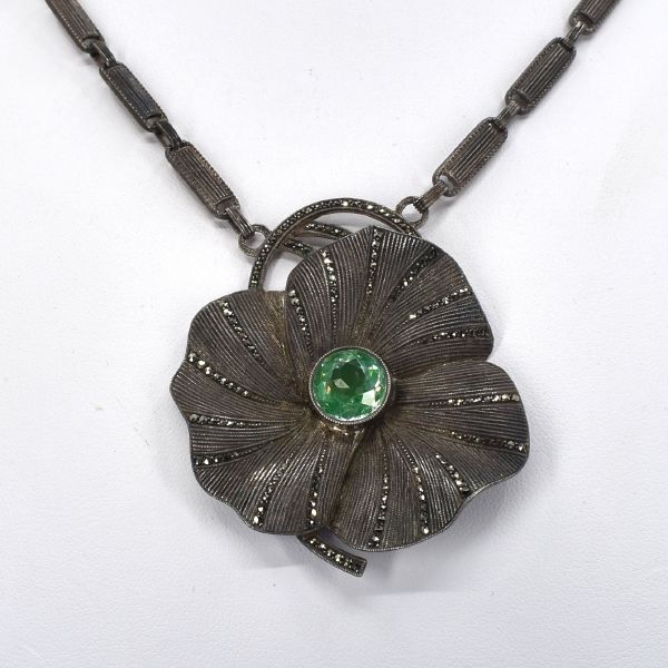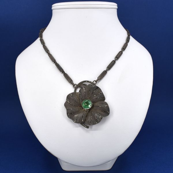 Anhänger - Silber, grünes Glas - Theodor Fahrner (1859 - 1919), Pforzheim - 1930 - Anzeigedetail
