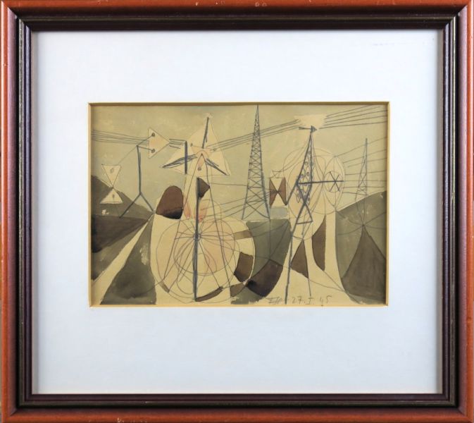 zusätzliche Information: datiert, gerahmt mit Passepartout, unter Glas, gerahmt, mit Monogramm signiert, Aquarell, Bleistiftzeichnung