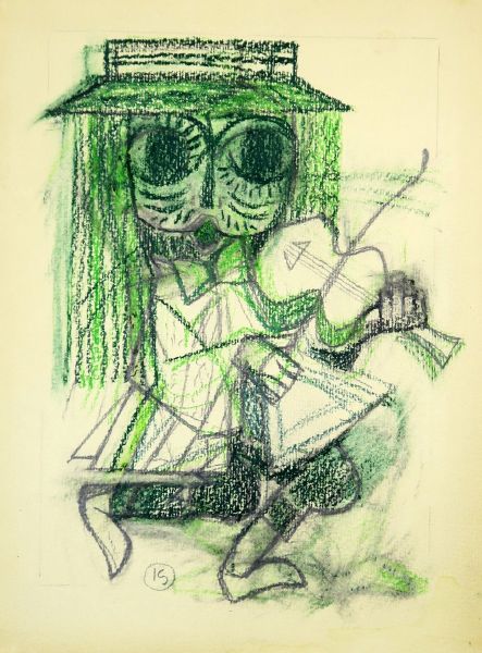 Linolschnitt auf Papier 12,3 x 10,5 cm. Unten rechts mit Bleistift signiert....