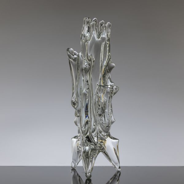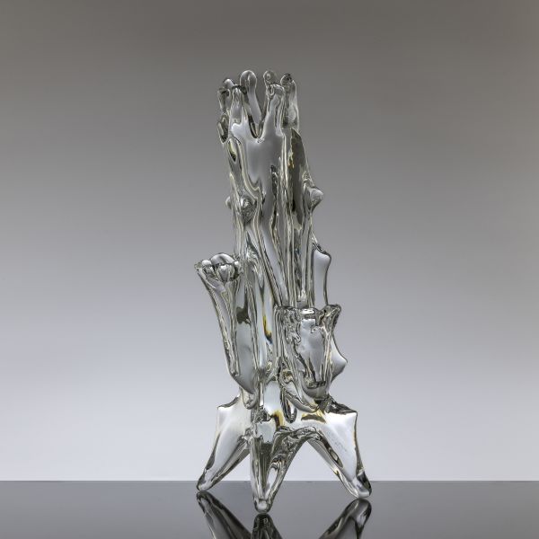 Rosafarbenes Glas überfangen in klarem Glas. Rosa Glas mit Schaumglasdekor....