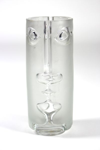 Helles und dunkleres Bernsteinglas, geschliffen und bemalt. Vase zylindrisch,...