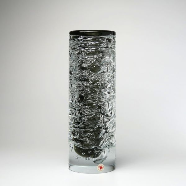 Hellblaues, milchig weißes und klares Glas. Konische Vase, unterlegt mit...