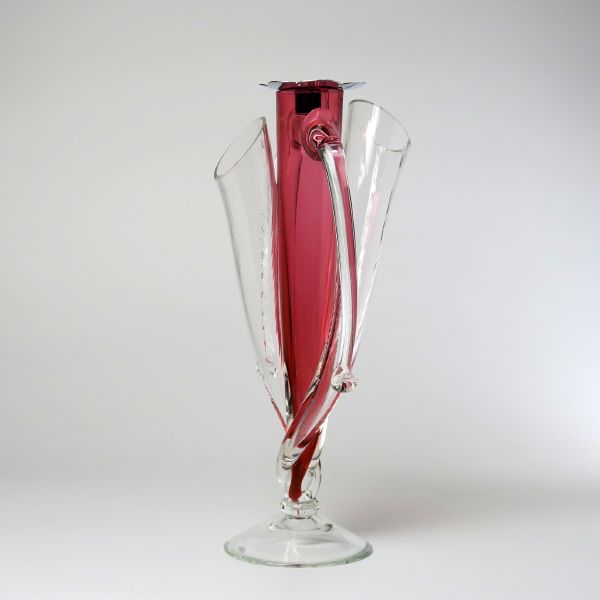 Materialien: Metall, klares Glas, Rosaglas, handgemachte Glas