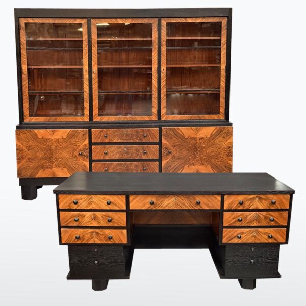 Antiquität: Arbeitszimmer Möbel - massive Eiche, Nussbaumfurnier - 1930