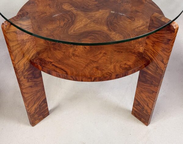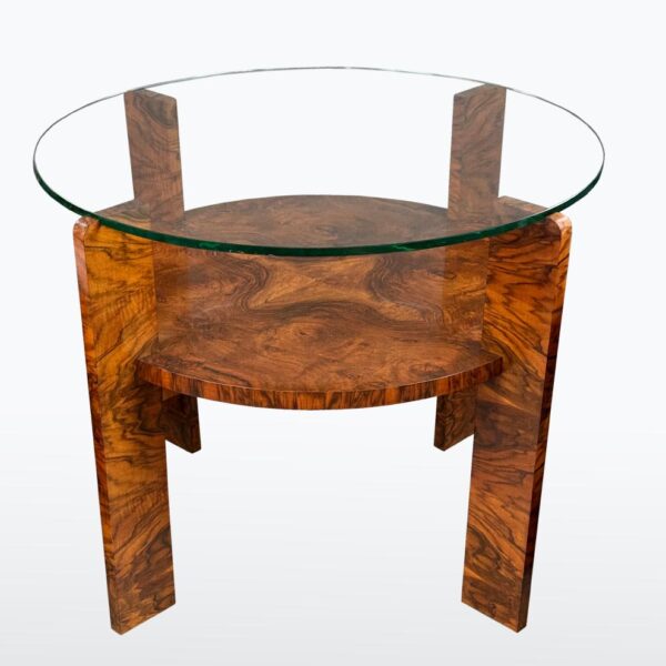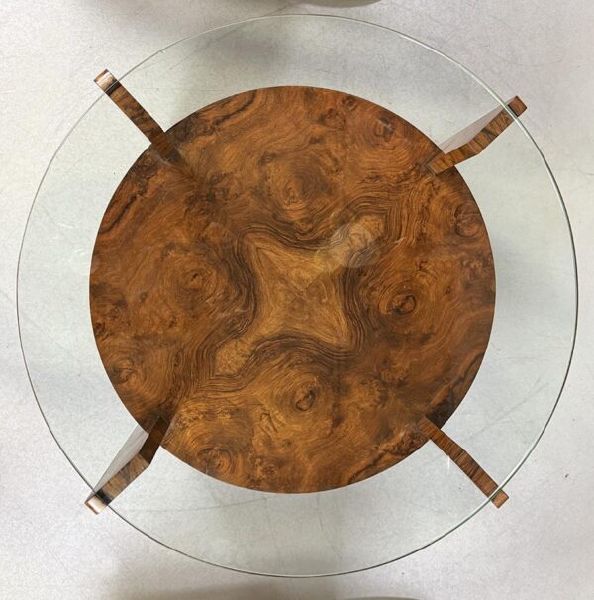 Materialien: Massivholz, Nussbaumfurnier, klares Glas