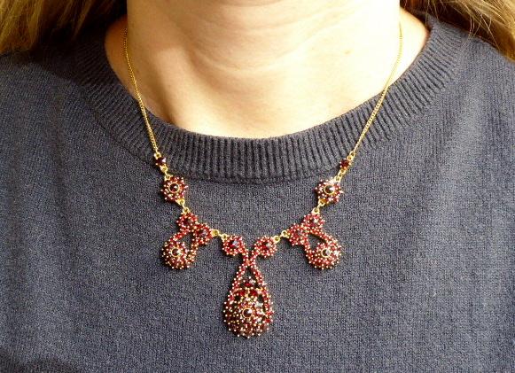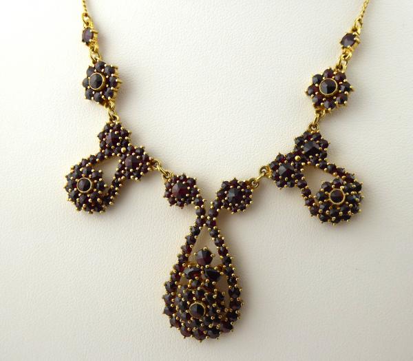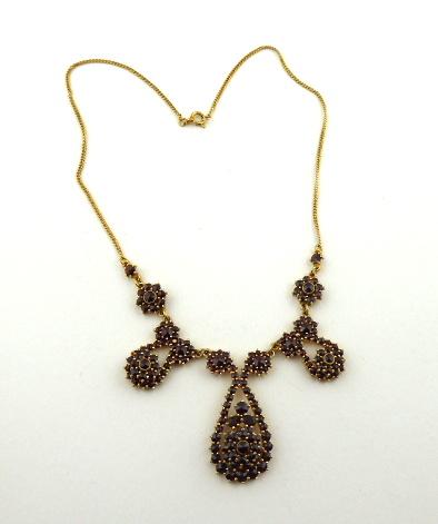 Antiquität: Collier mit böhmischen Granaten - Silber, Tschechischer Granat - 1957