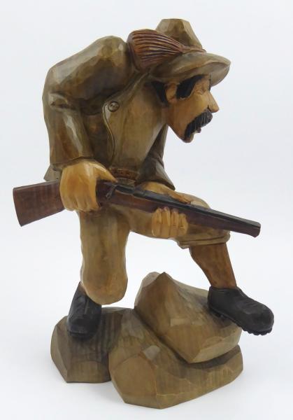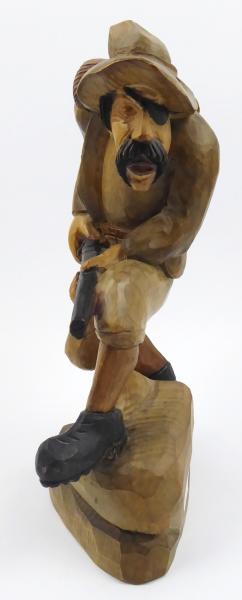 Patinierte Zinn oder Eisen. Skulptur Schuster auf einem Stuhl mit einem Hammer...
