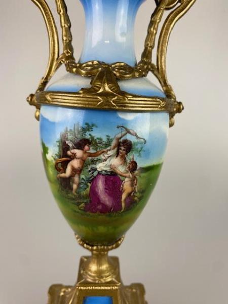 Weißes, blaues, bemaltes und vergoldetes Porzellan. Klassische Form. Dekoriert...